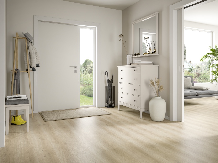 Detta vattenresistenta hybridgolv tål upp till 72 timmars vattenpåverkan i form av sprut, droppar och lätt spill utan att ta skada, vilket gör det idealt för entréer, tvättstugor, kök och andra våtutrymmen. Den hållbara Aqua+ kärnplattan kombinerad med det smarta Aqua CLIC it! klicksystemet säkerställer långvarigt skydd mot fukt samt att golvet är lätt att montera.